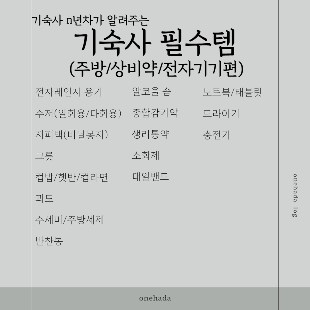 지금까지 기숙사 준비물 주방, 상비약, 전자기기에 대해 알아보았습니다.
